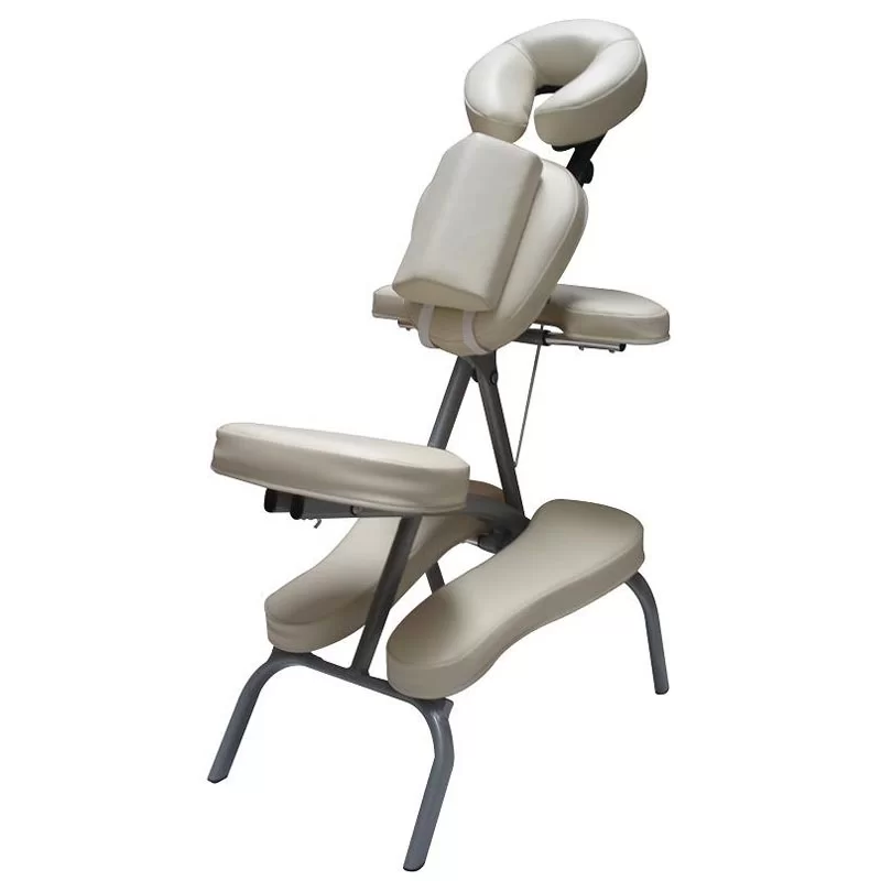Enkel energimassagestol att använda och att förflytta då den endast väger 9 kg. Stilren design med aluminiumram. Stoppning med hög densitet och klädsel i slitstarkt och miljövänligt PU-material. Justerbar i höjd samt för arm, bröst och huvudstöd. Smidig transportväska ingår i priset.