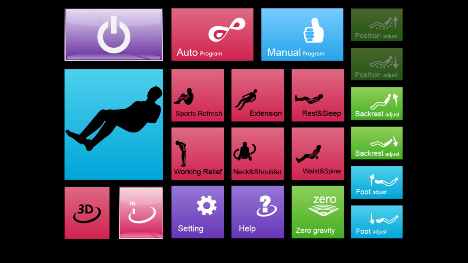 Diese Funktion ist von der Körperhaltung der Astronauten beim Start inspiriert, um den Druck auf die Wirbelsäule zu verringern und die Durchblutung zu erhöhen. In dieser Position werden die Beine über das Herz geneigt, was das Gewicht des Körpers entlastet und die Belastung der Wirbelsäule verringert, was zu einem Gefühl der Schwerelosigkeit und Entspannung führt.